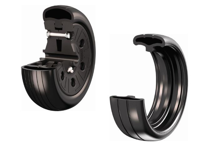 en empêchant la terre de coller sur le bandage caoutchouc.